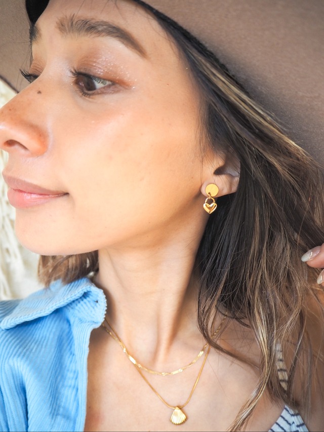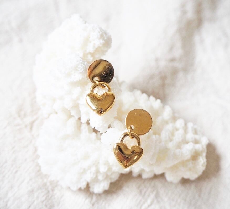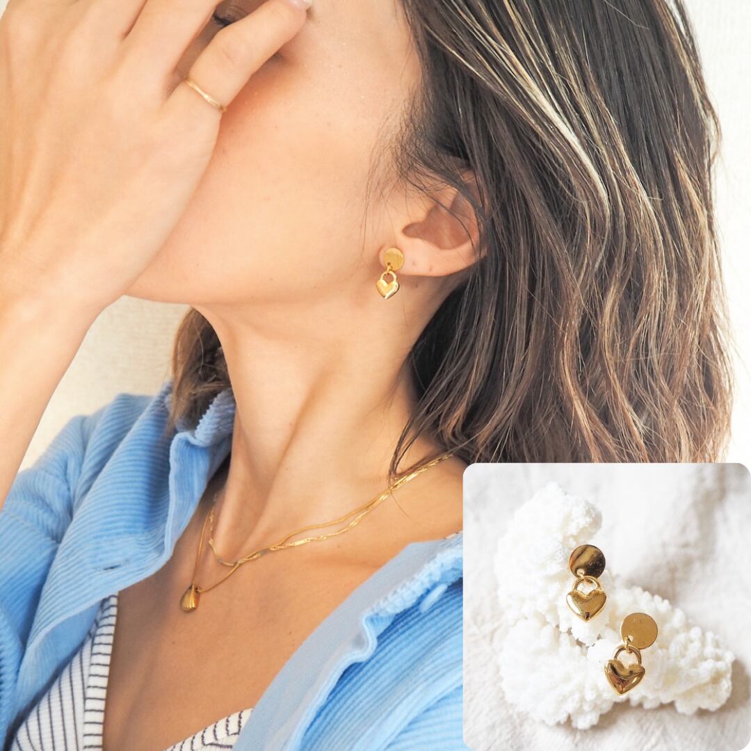 ちいさなハートがさりげなく揺れるピアス。