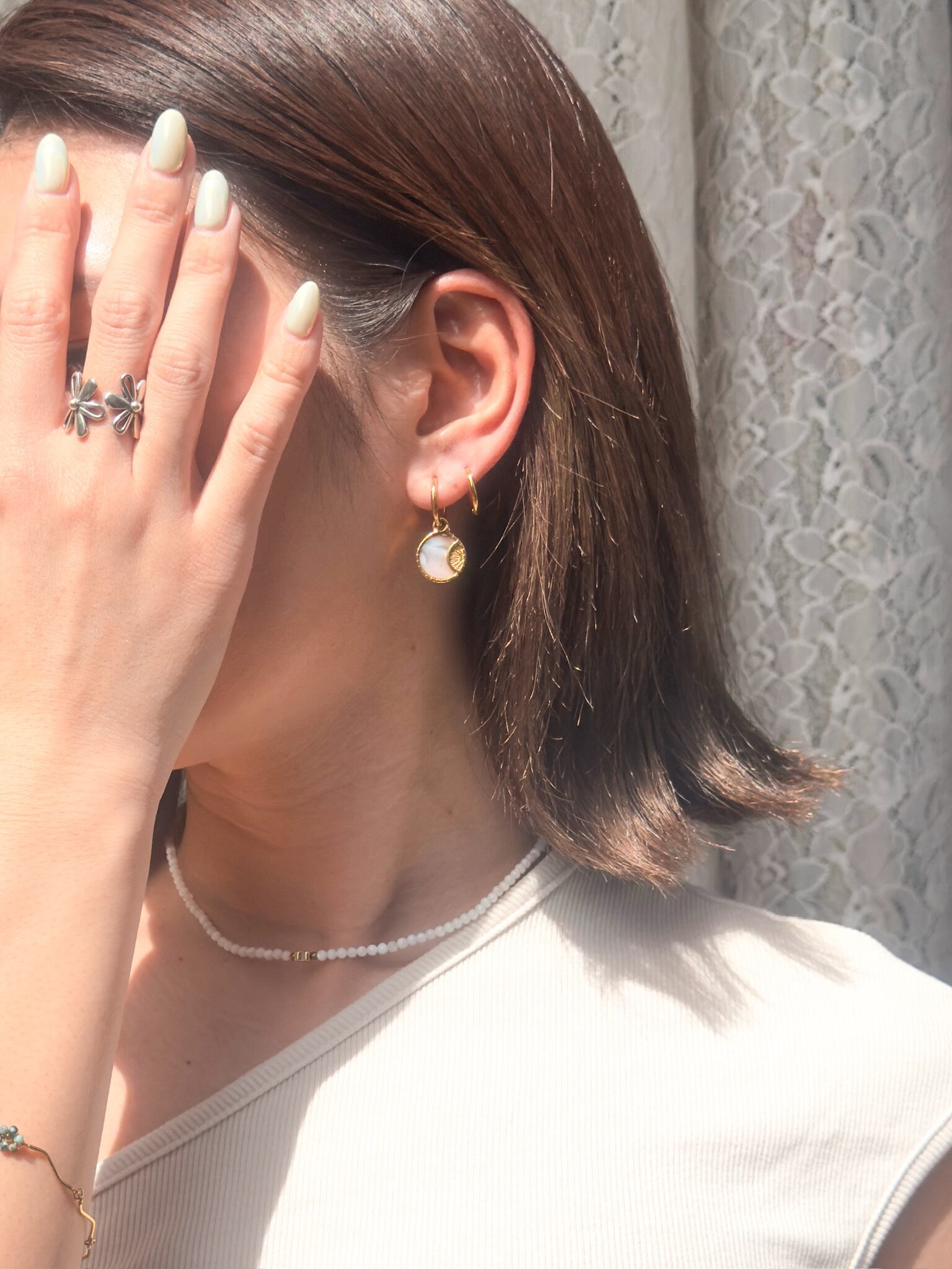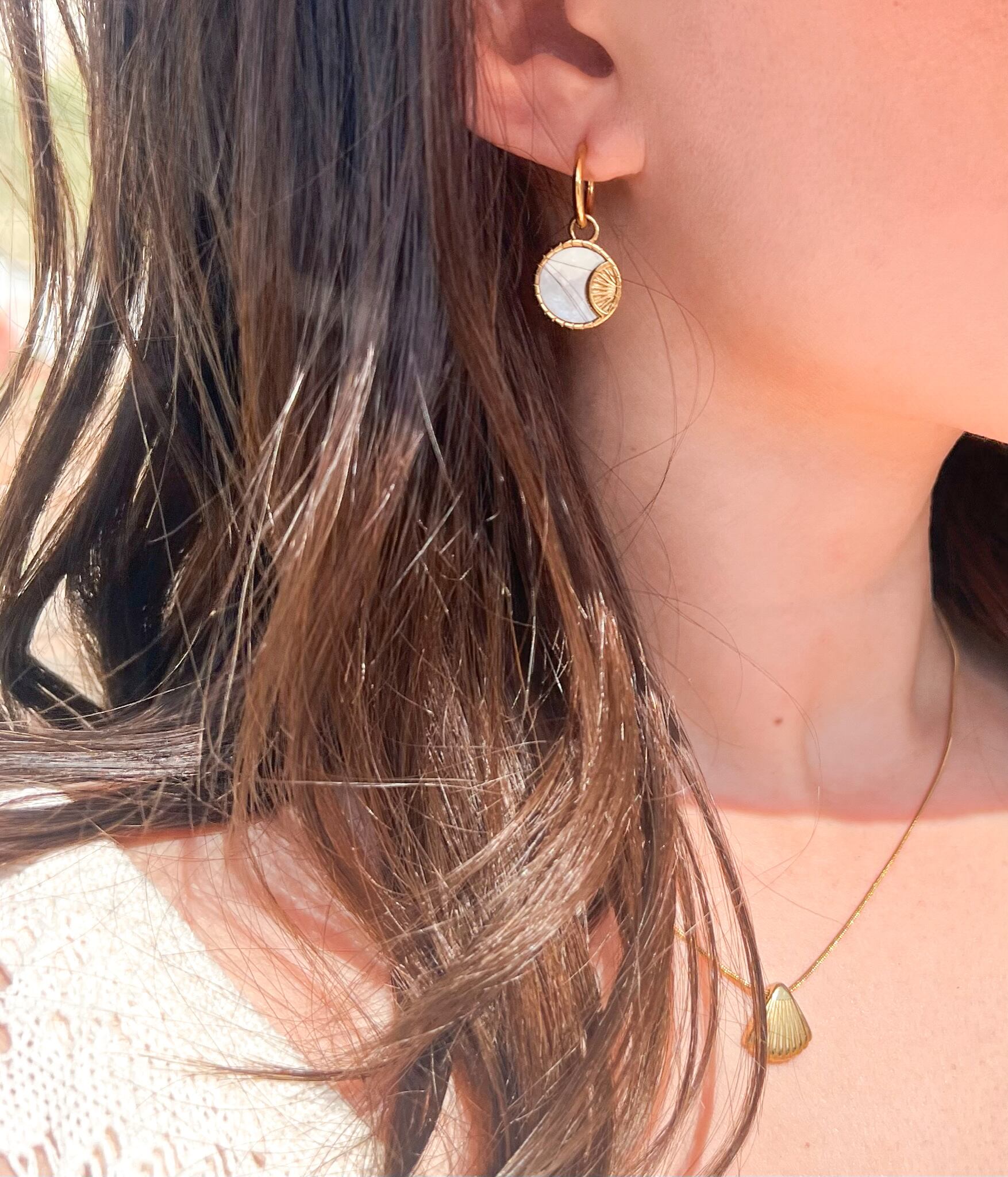 Shell full moon hoop pierce シェルフルムーン(満月)フープピアス