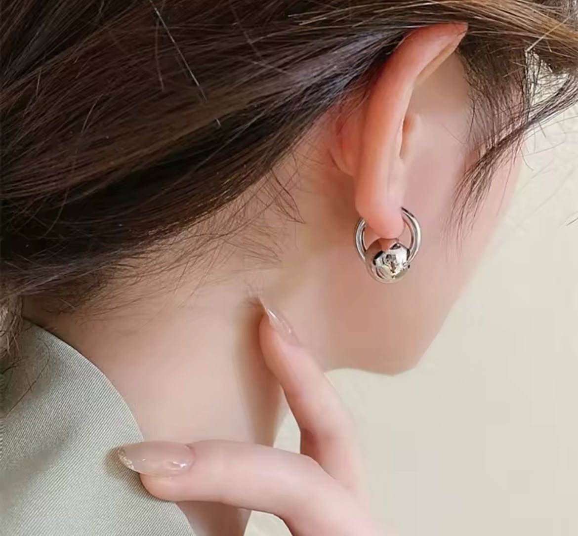 上:Silver ball-Gold hoop